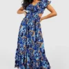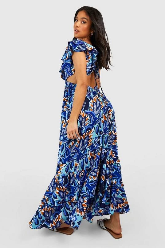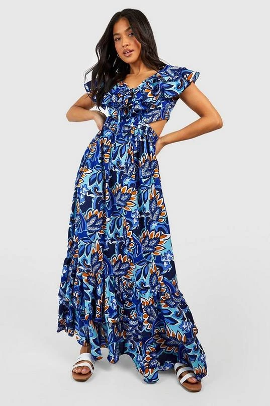 BOOHOO Petite Ruffle Paisley Tie Back Maxi Dress