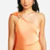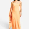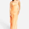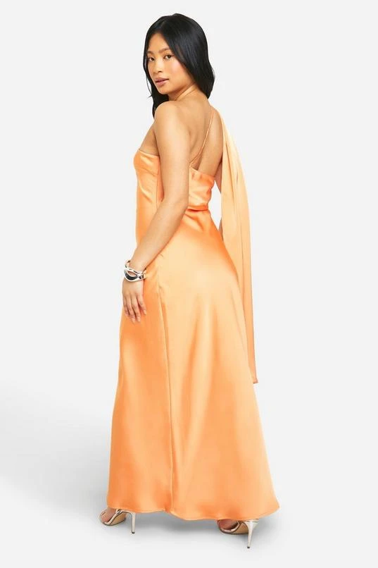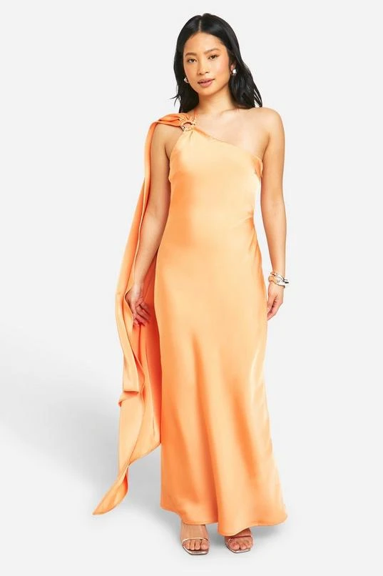BOOHOO Petite Satin Draped Shoulder Maxi Dress