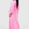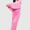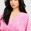 BOOHOO Petite Satin Plisse Plunge Batwing Maxi Dress