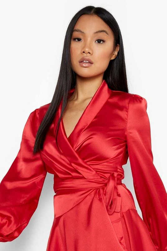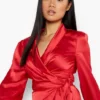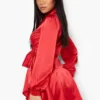BOOHOO Petite Satin Wrap Detail Mini Skater Dress