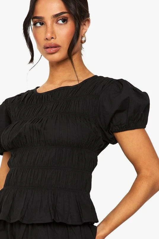 BOOHOO Petite Shirred Poplin T-shirt And Short Co Ord