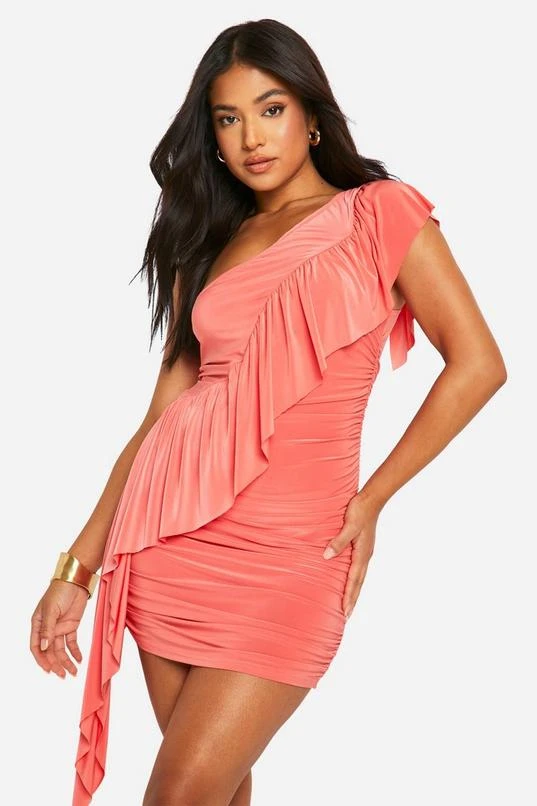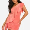 BOOHOO Petite Slinky Asymmetric Ruffle Mini Dress