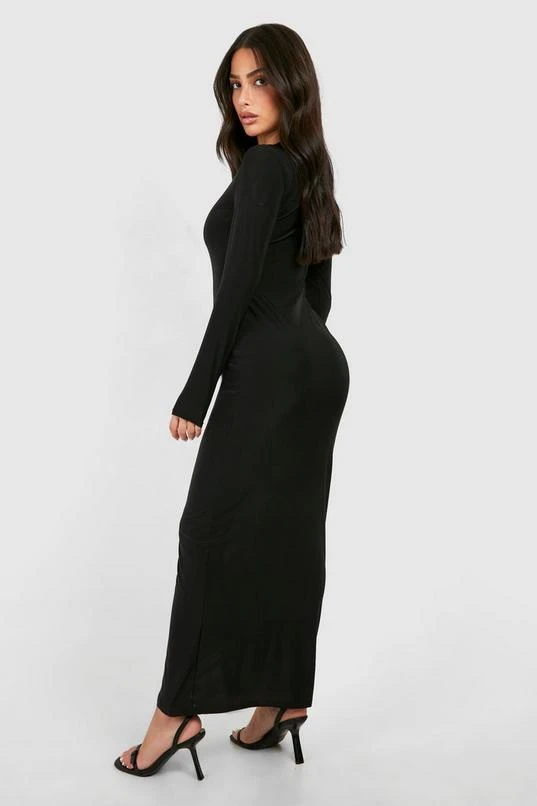 BOOHOO Petite Slinky Scoop Neck Long Sleeve Maxi Dress