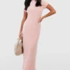 BOOHOO Petite Slinky Short Sleeve High Neck Maxi Dress