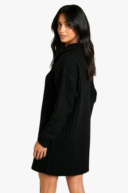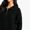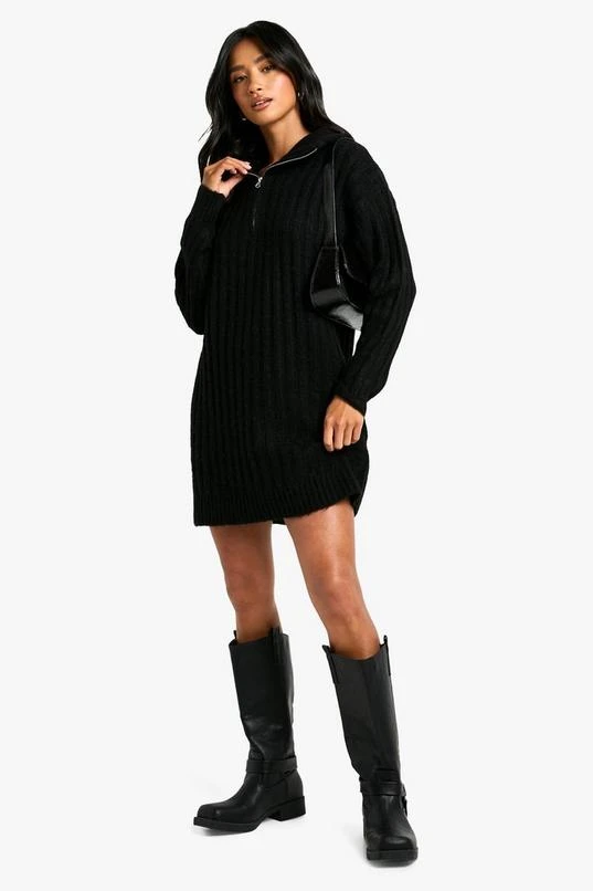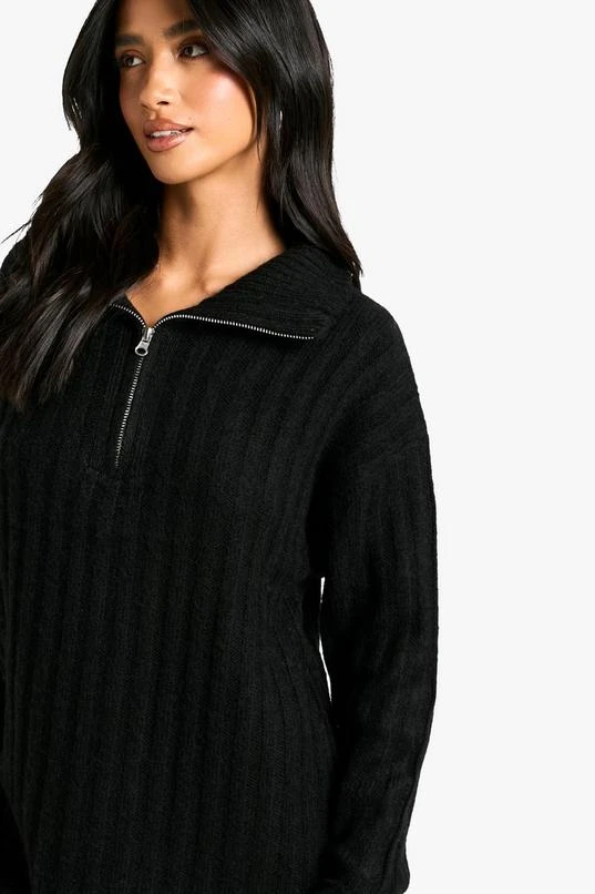 BOOHOO Petite Soft Knit Thick Rib Zip Neck Oversize Mini Dress