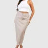 BOOHOO Petite Split Front Denim Maxi Skirt