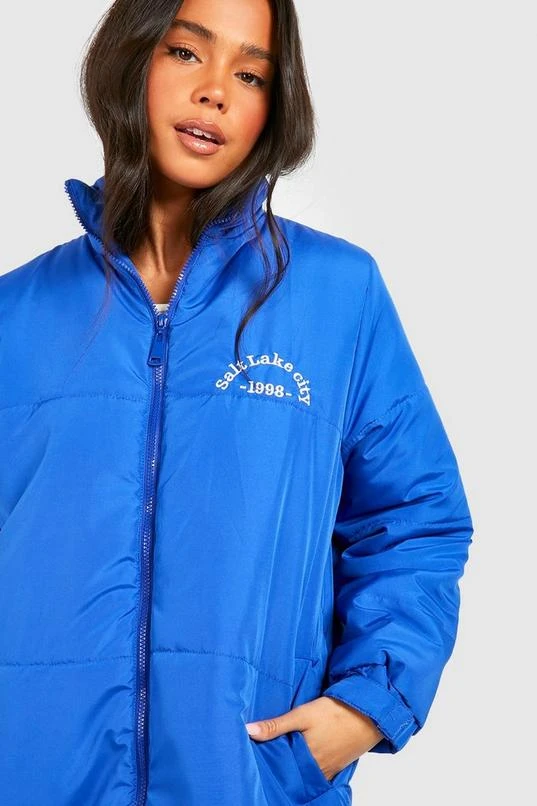 BOOHOO Petite Sporty Embroidered Maxi Puffer Coat
