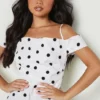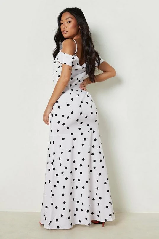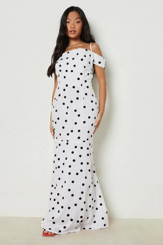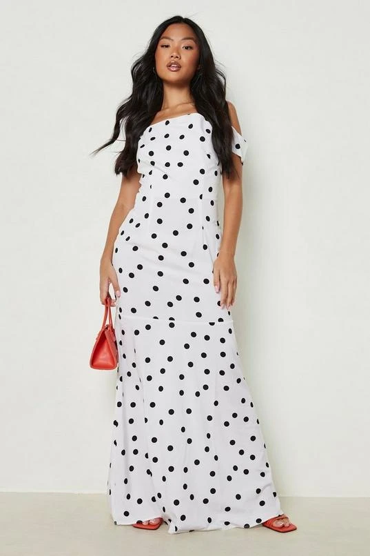 BOOHOO Petite Spot Cold Shoulder Cowl Maxi Dress