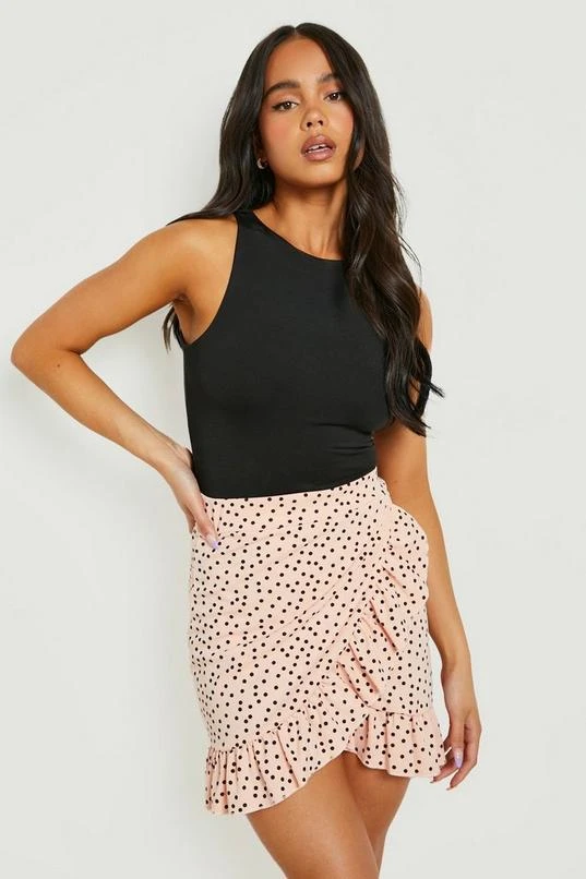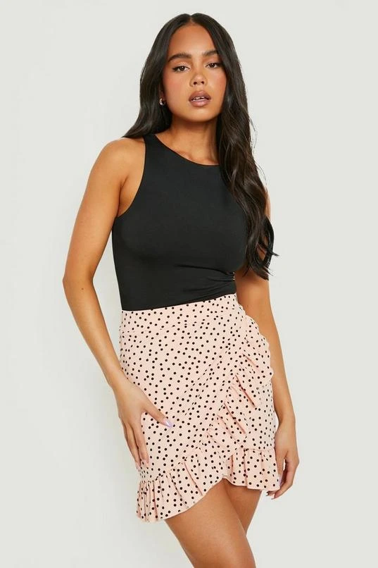 BOOHOO Petite Spot Print Ruffle Wrap Mini Skirt