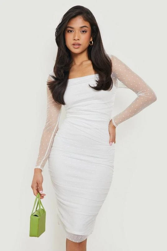 BOOHOO Petite Square Neck Dobby Mesh Midi Dress
