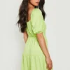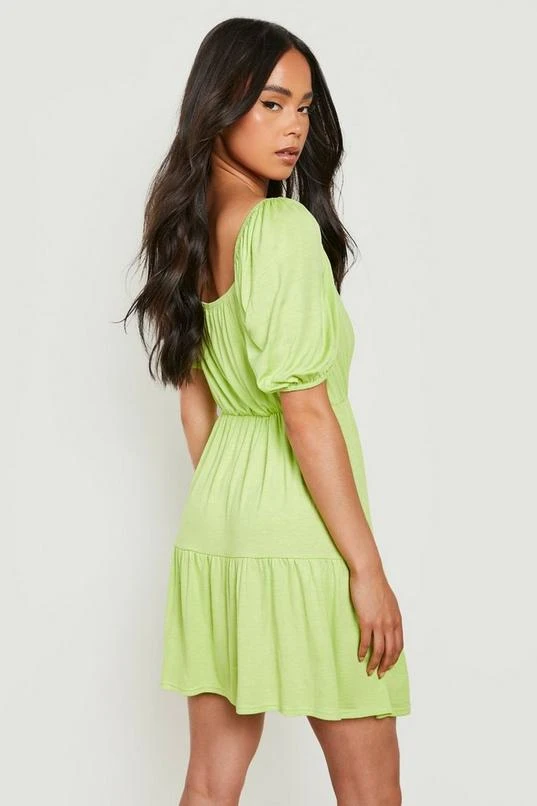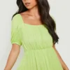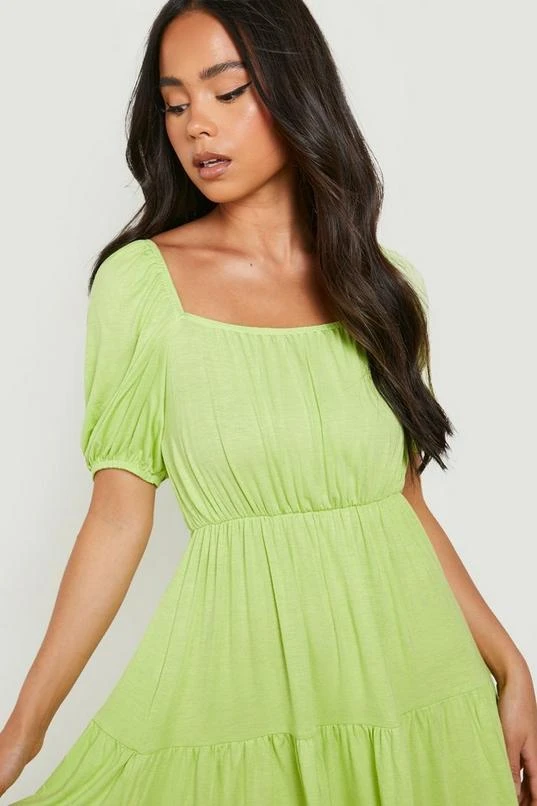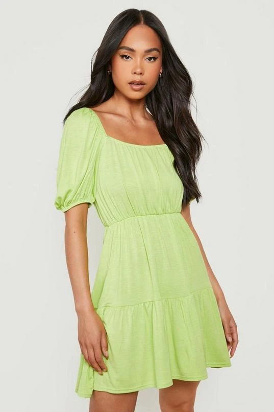 BOOHOO Petite Square Neck Puff Sleeve Smock Dress