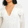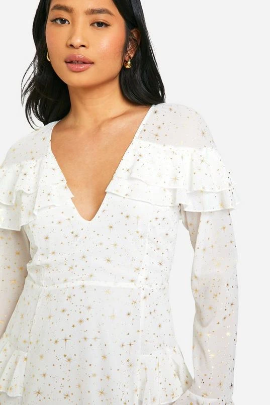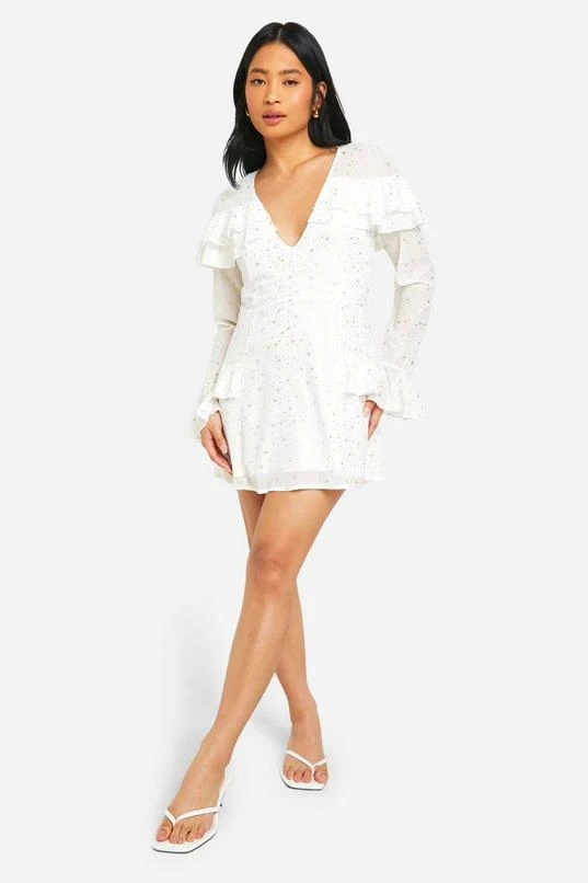 BOOHOO Petite Star Ruffle Detail Plunge Mini Dress