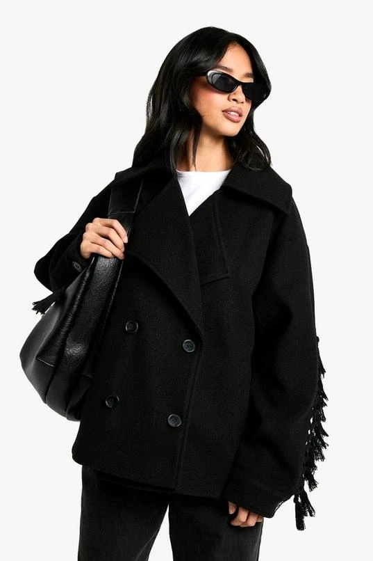 BOOHOO Petite Tassel Detail Wool Look Jacket