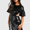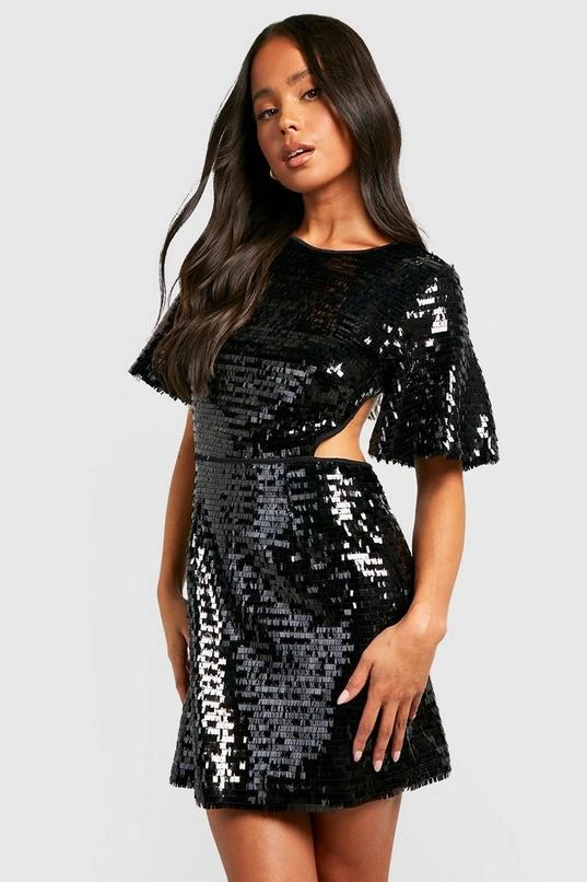 BOOHOO Petite Tassel Sequin Angel Sleeve Shift Dress