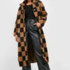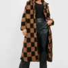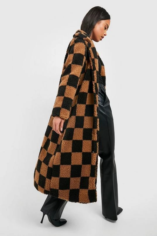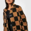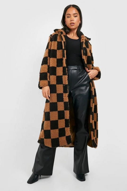 BOOHOO Petite Teddy Checkerboard Coat