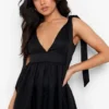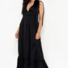 BOOHOO Petite Tie Shoulder Tiered Hem Maxi Dress
