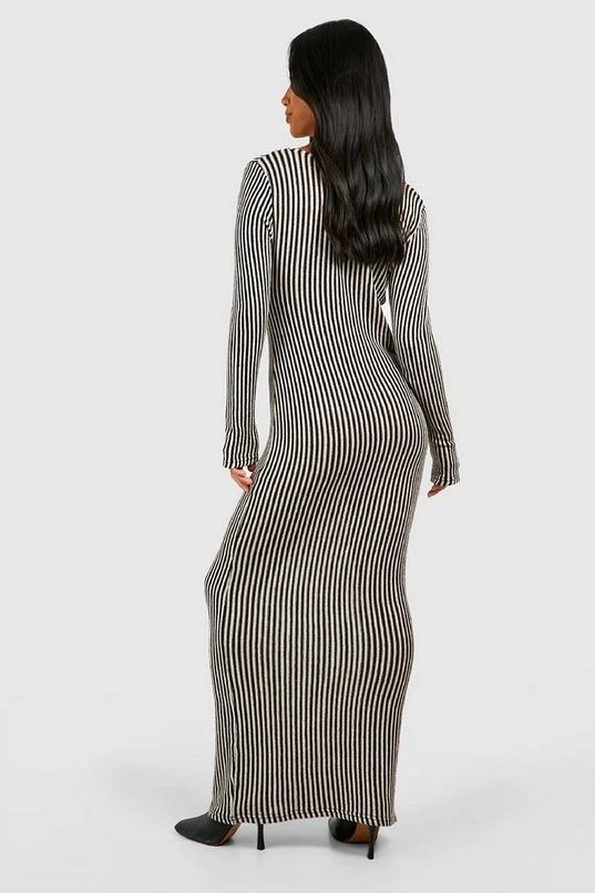 BOOHOO Petite Tonal Rib Notch Neck Column Maxi Dress