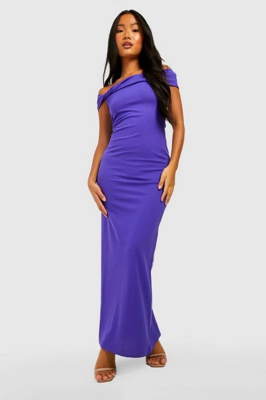 BOOHOO Petite Twist Off The Shoulder Maxi Dress