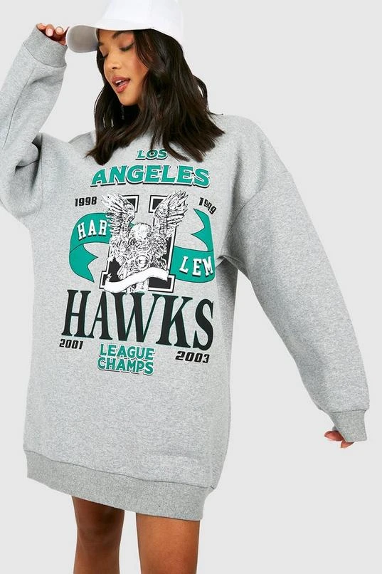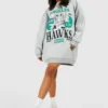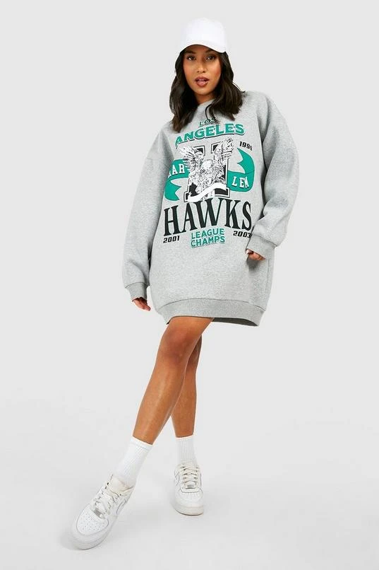 BOOHOO Petite Varsity Slogan Oversized Sweat Dress