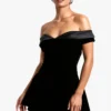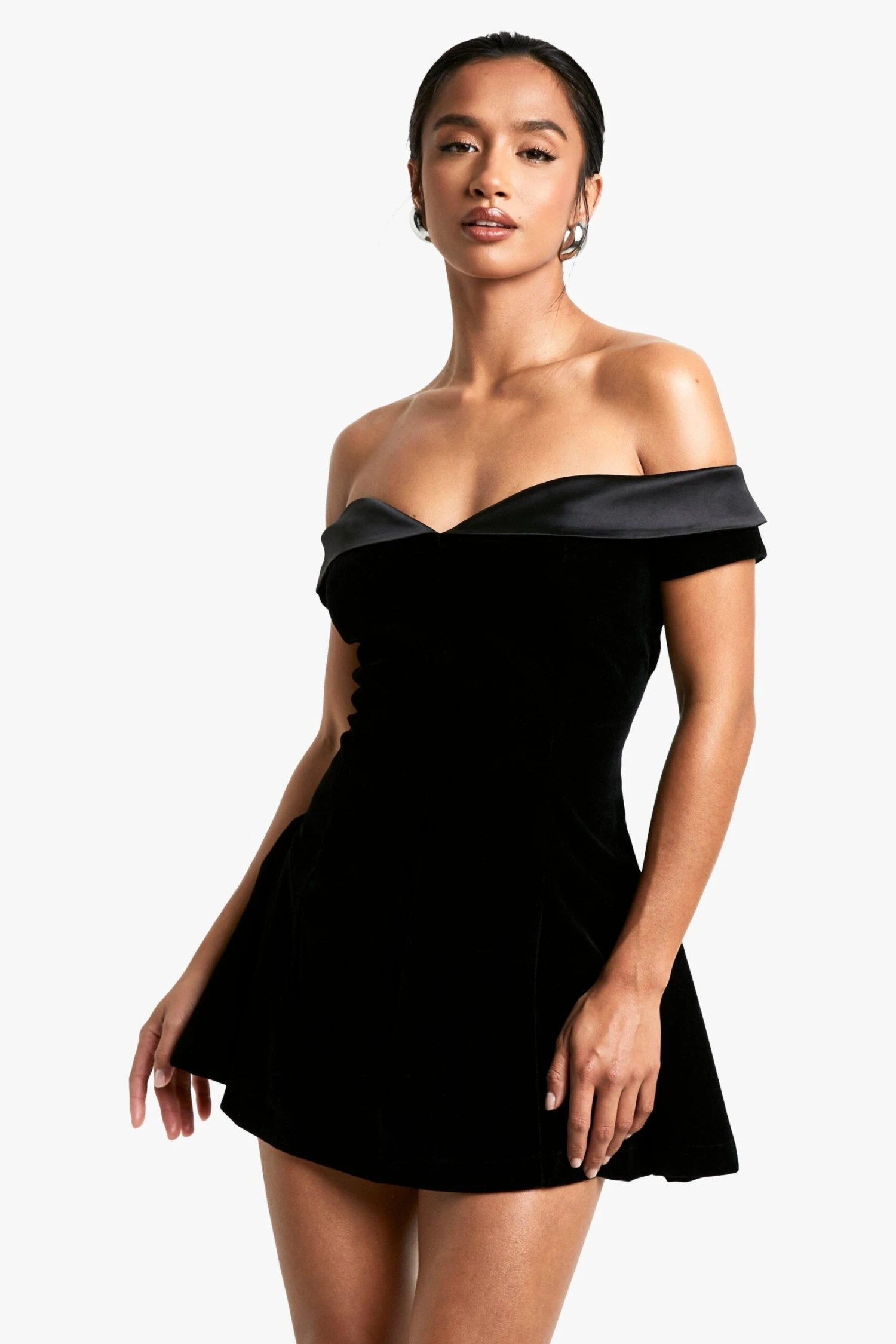 BOOHOO Petite Velvet Bardot Mini Dress