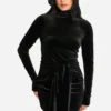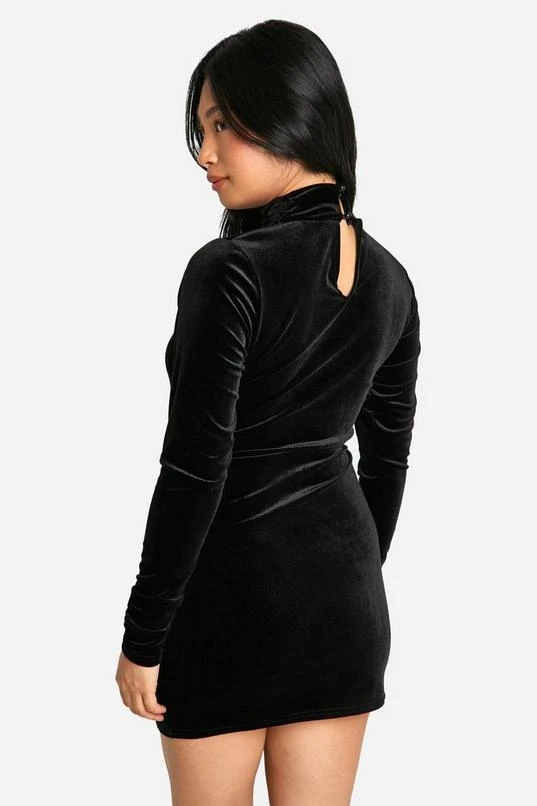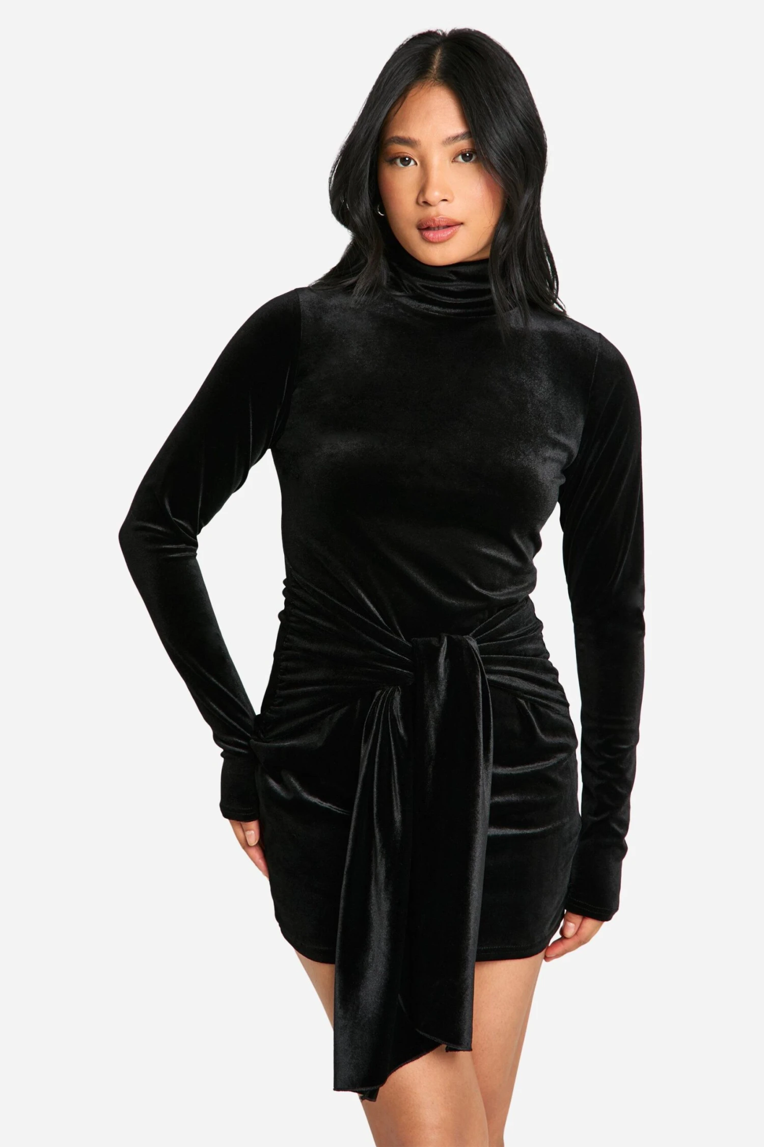 BOOHOO Petite Velvet High Neck Wrap Detail Mini Dress