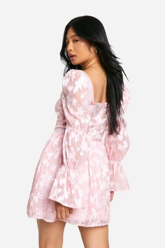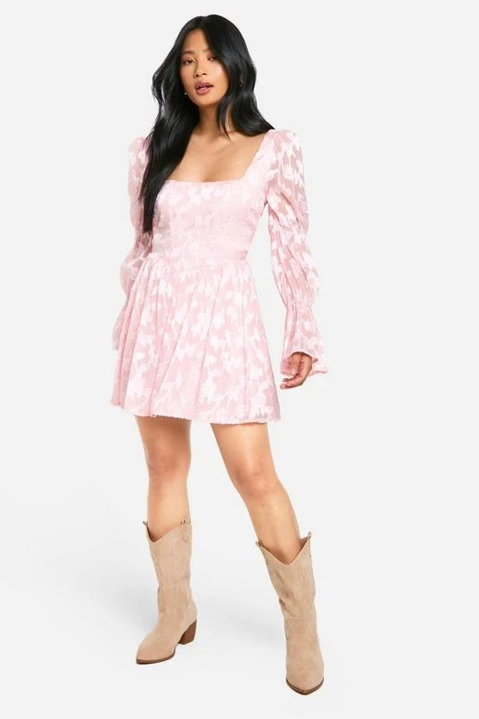 BOOHOO Petite Volume Sleeve Burnout Skater Dress