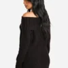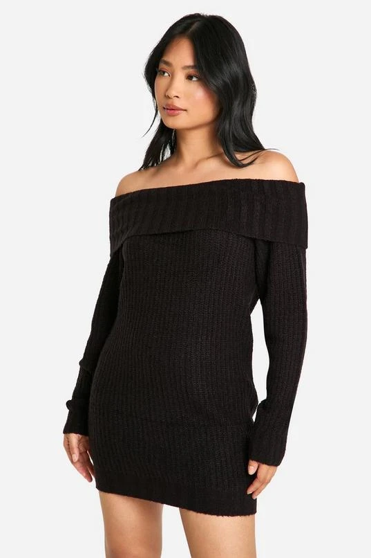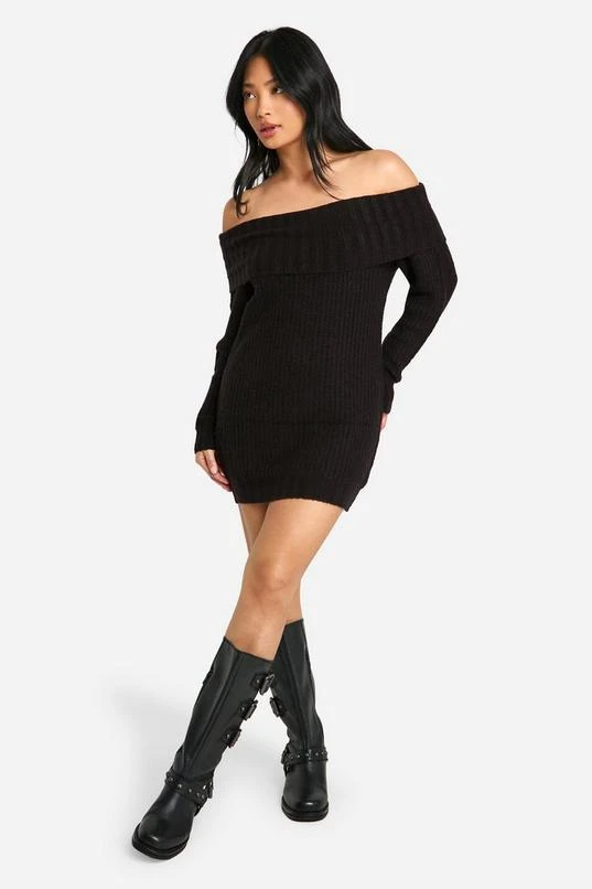 BOOHOO Petite Wide Rib Off The Shoulder Neckline Mini Sweater Dress