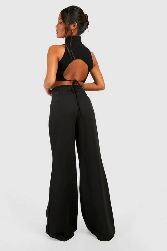 BOOHOO Petite Woven Asymmetric Waistband Pants