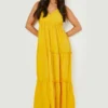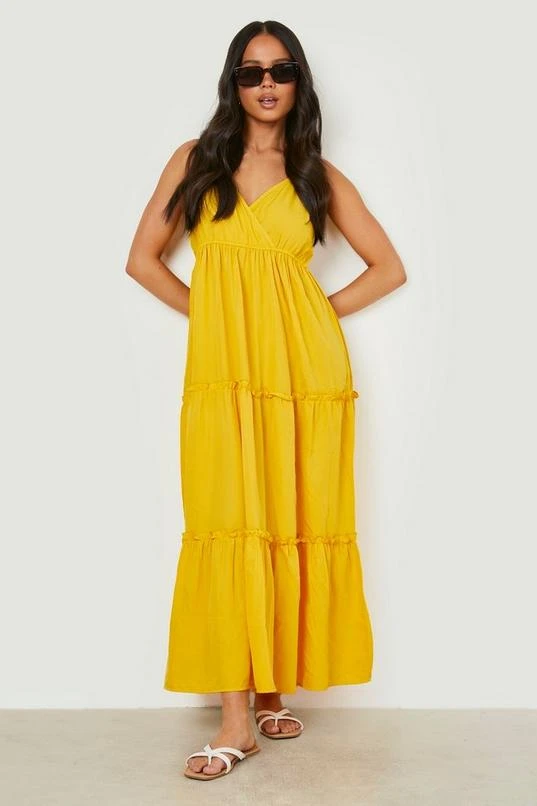 BOOHOO Petite Woven Wrap Tiered Maxi Dress