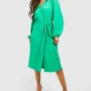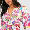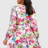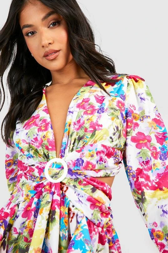 BOOHOO Petite Wrap Cut Out Ruffle Skater Dress