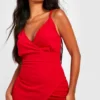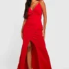 BOOHOO Petite Wrap Front Split Leg Scuba Maxi Dress