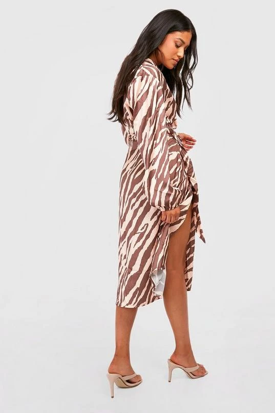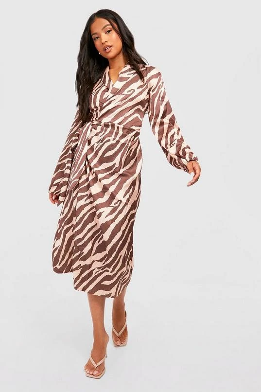 BOOHOO Petite Zebra Print Wrap Midi Dress
