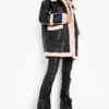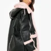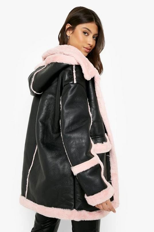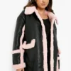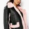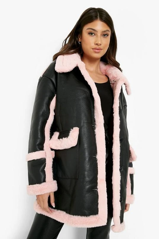 BOOHOO Pink Faux Fur Trim Longline Aviator Jacket