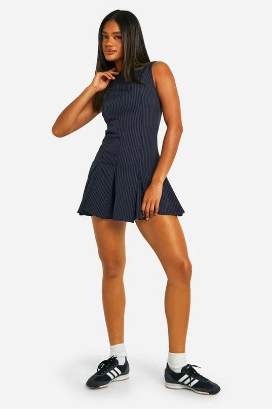 BOOHOO Pinstripe Box Pleat Mini Dress