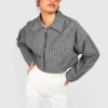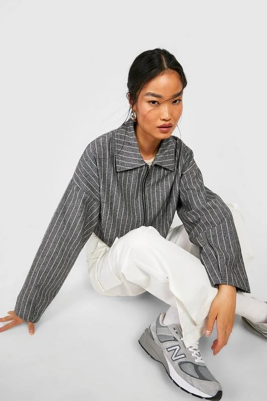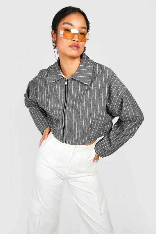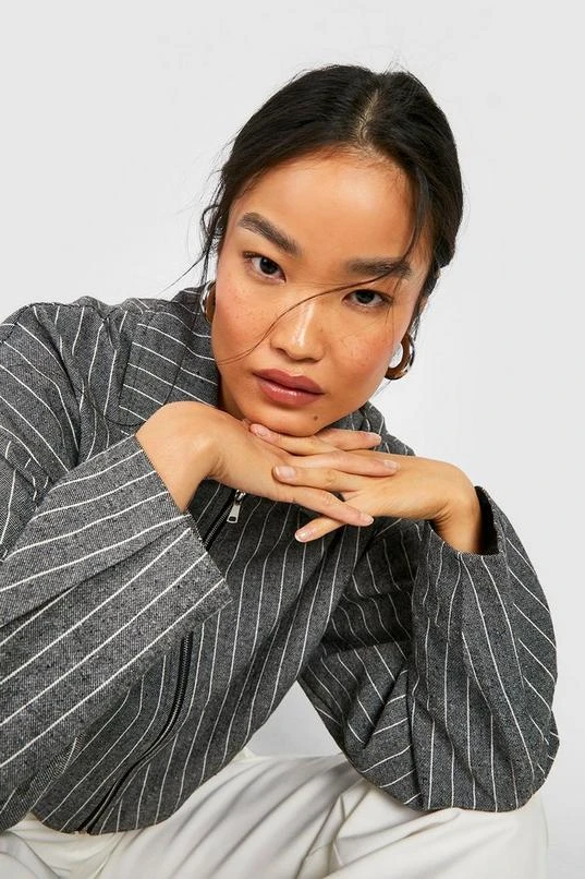 BOOHOO Pinstripe Crop Bomber Jacket