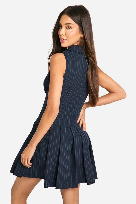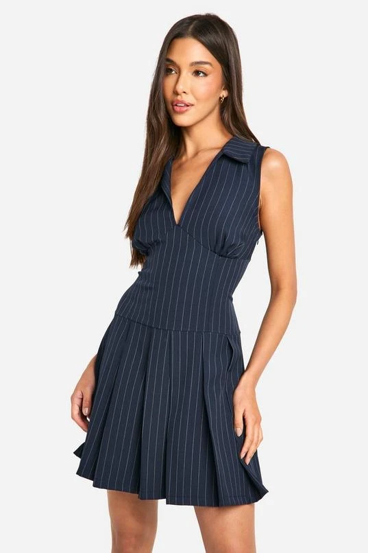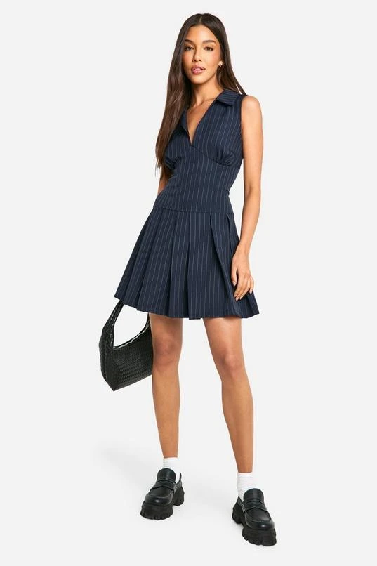 BOOHOO Pinstripe Pleated Mini Dress