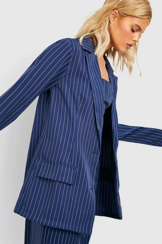 BOOHOO Pinstripe Relaxed Fit Tailored Blazer