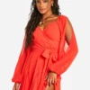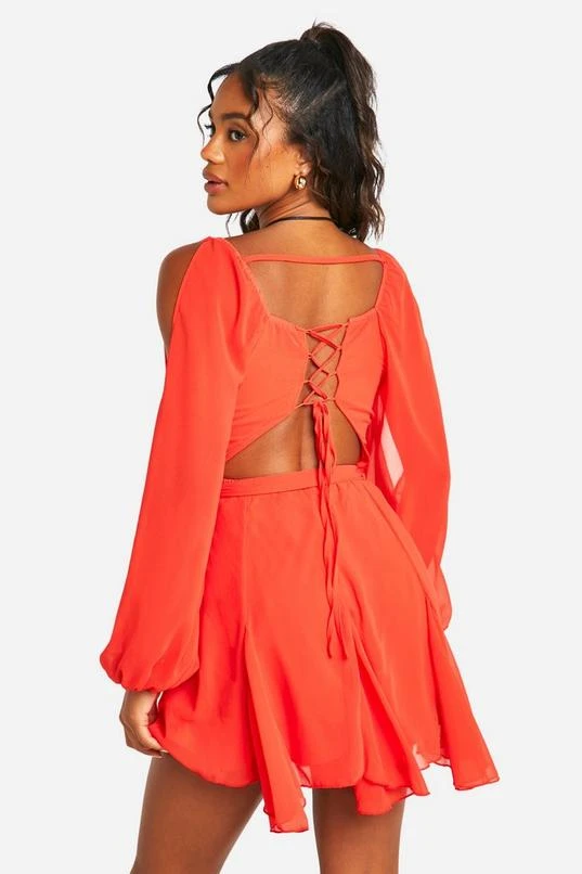 BOOHOO Plain Godet Hem Lace Up Skater Dress