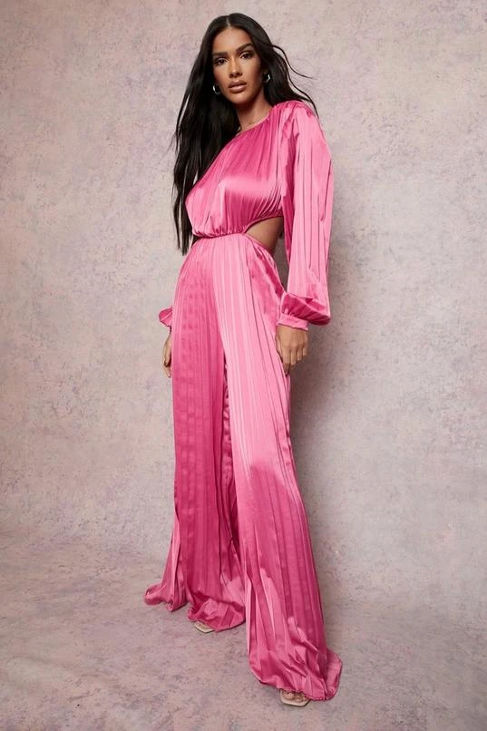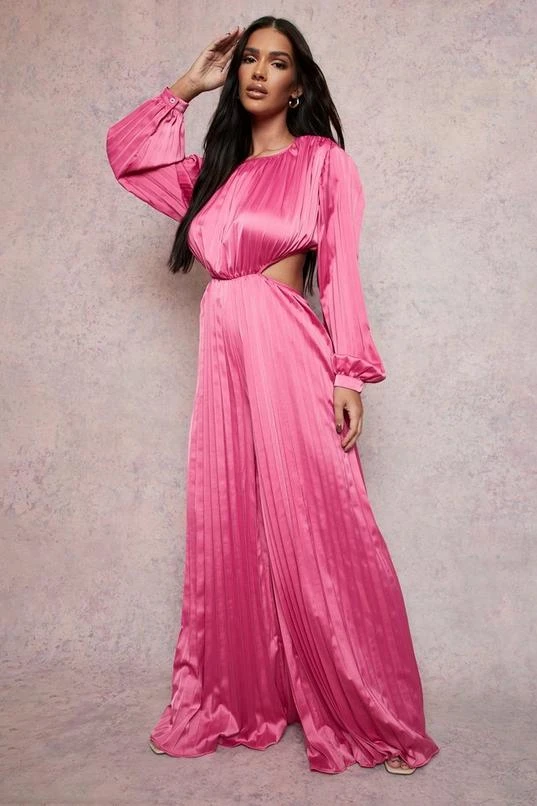BOOHOO Pleated Cut Out Wide Leg Jumpsuit