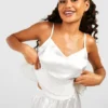 BOOHOO Pleated Frill Satin Cami & Pants Set