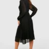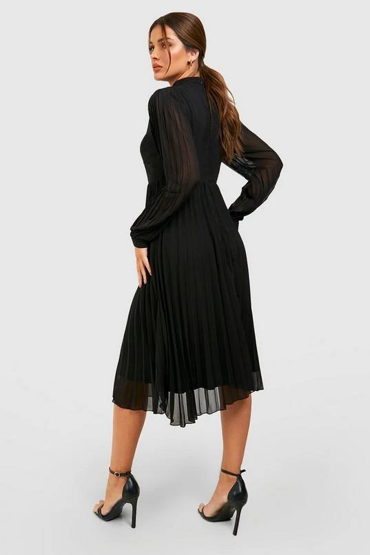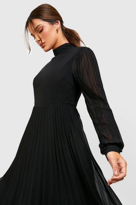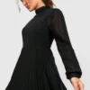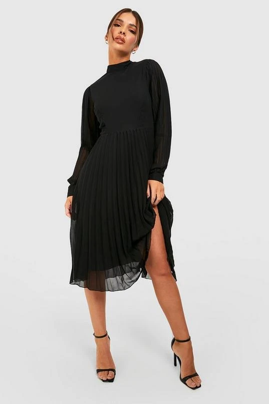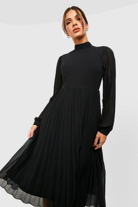 BOOHOO Pleated High Neck Midi Skater Dress