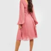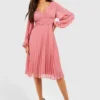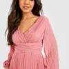 BOOHOO Pleated Plunge Wrap Midi Dress