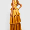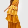 BOOHOO Pleated Ruffle Detail Maxi Dress