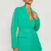BOOHOO Pleated Self Fabric Belt Blazer Dress