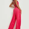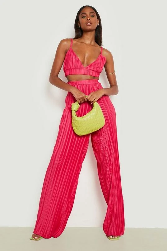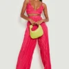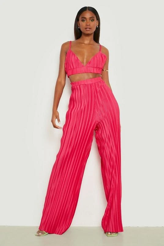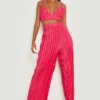 BOOHOO Plisse Bralette & Wide Leg Pants Set