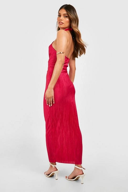 BOOHOO Plisse Halter Midi Dress
