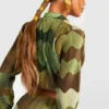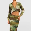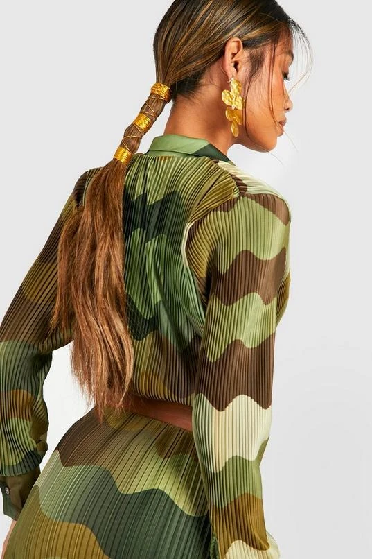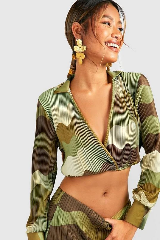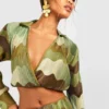 BOOHOO Plisse Marble Print Wrap Front Shirt
