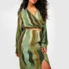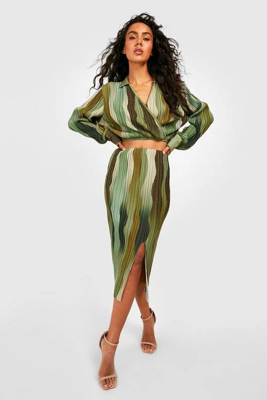 BOOHOO Plisse Marble Split High Waist Midi Skirt