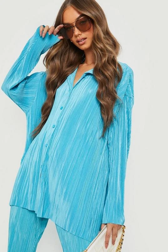 BOOHOO Plisse Oversized Relaxed Fit Shirt