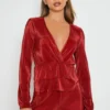 BOOHOO Plisse Peplum Top And Pants Two-Piece